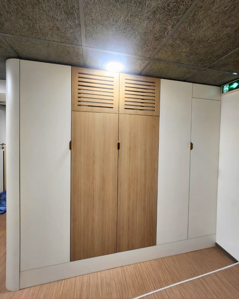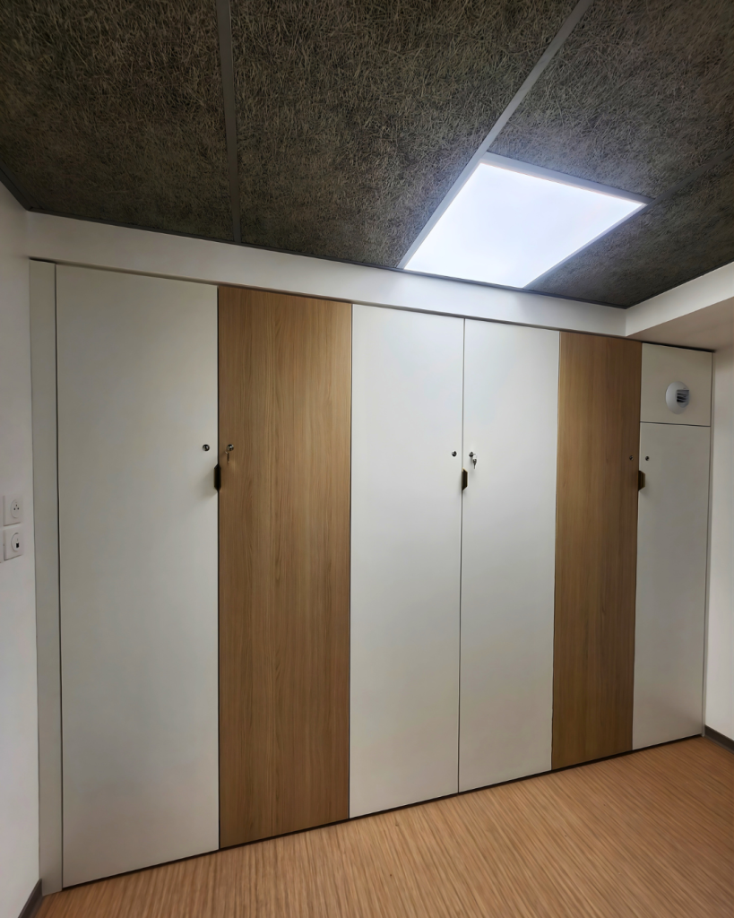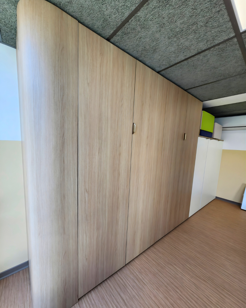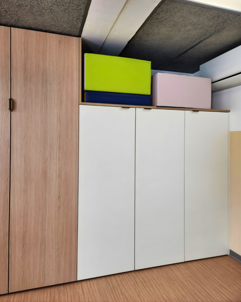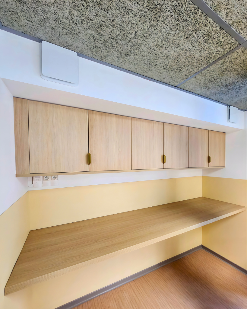Conception d’un agencement pour la crèche, la Ribambelle à Montpellier, se distinguant par des lignes galbées et des finitions mêlant le blanc pur et le bois. Chaque pièce a été pensé pour maximiser la capacité de stockage tout en garantissant une simplicité pour le personnel. Les angles arrondis et les différents détails en menuiserie créent un lieu apaisant et protecteur, idéal pour nos enfants !