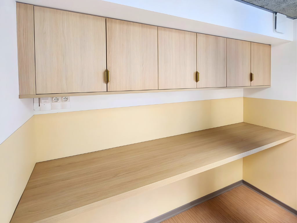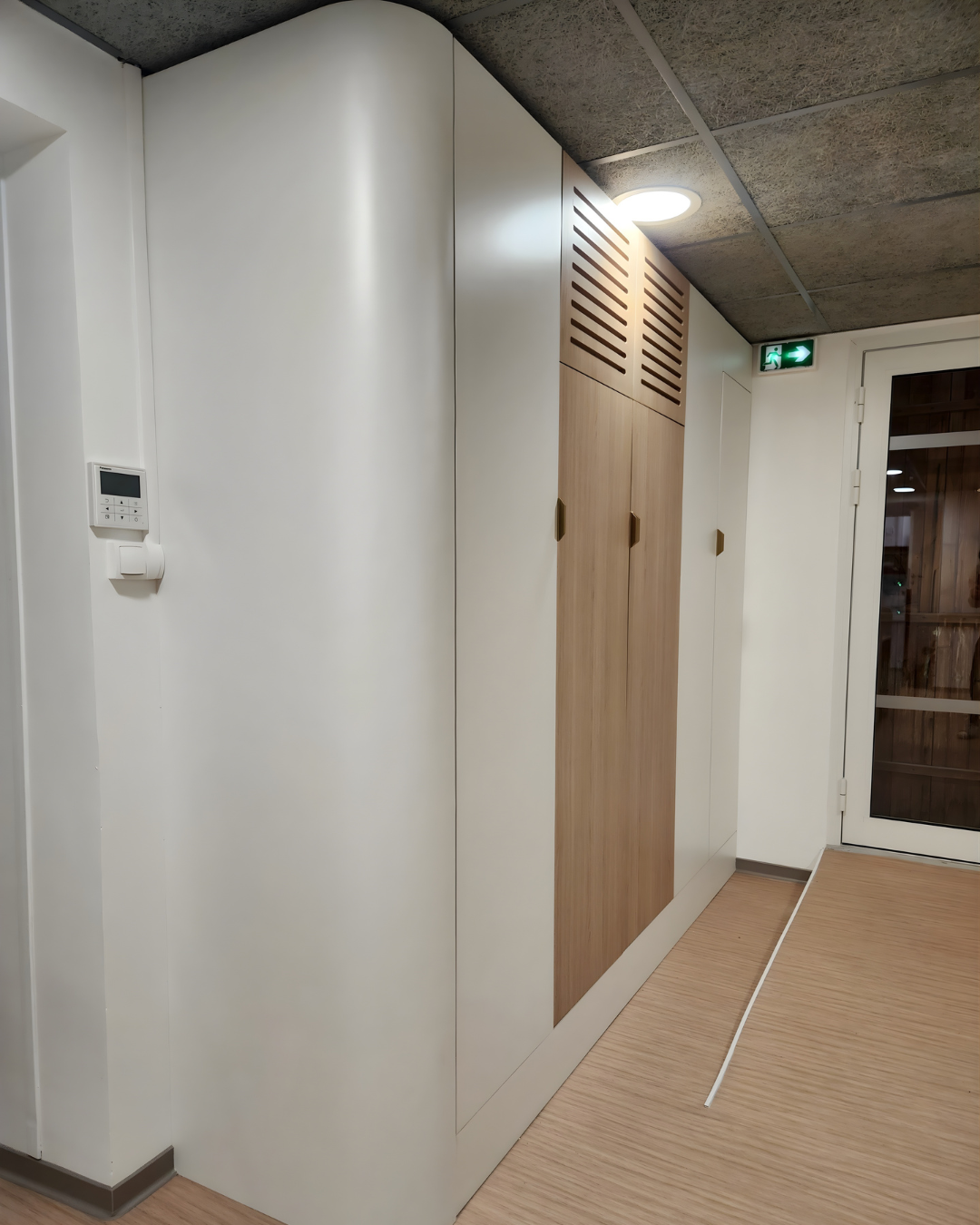 Conception d’un agencement pour la crèche, la Ribambelle à Montpellier, se distinguant par des lignes galbées et des finitions mêlant le blanc pur et le bois. Chaque pièce a été pensé pour maximiser la capacité de stockage tout en garantissant une simplicité pour le personnel. Les angles arrondis et les différents détails en menuiserie créent un lieu apaisant et protecteur, idéal pour nos enfants !